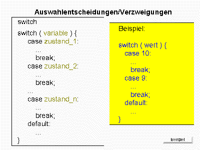 Klick auf den Beispiel-Button schaltet das Beispiel (gelb) zu.